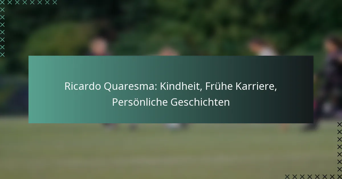 Die Reise von Ricardo Quaresma von einer kulturell reichen Kindheit in Portugal zum professionellen Fußballer ist geprägt von bedeutenden Einflüssen aus Familie und Gemeinschaft. Seine frühe Karriere war durch wichtige Meilensteine definiert, die seinen einzigartigen Spielstil verfeinerten, während persönliche Geschichten seine Resilienz und Leidenschaft für den Sport widerspiegeln und die Komplexität seines Charakters und seiner Karriere zeigen.